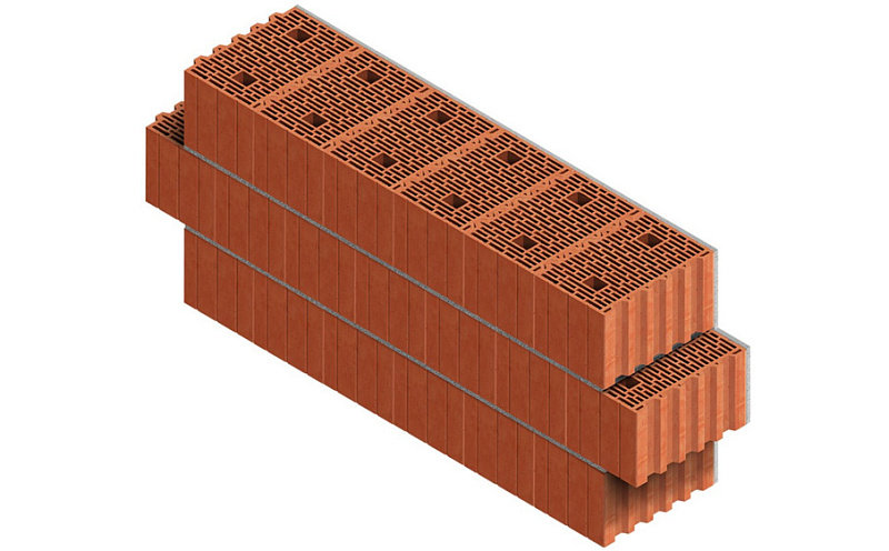 Блок керамический поризованный Porotherm 38 используется в строительстве несущих наружных и внутренних однослойных стен, не требующих дополнительной теплоизоляции. Толщина стены составит 380 мм. Блоки соединяются между собой структурой «паз-гребень», при этом вертикальный шов не заполняется кладочным раствором.